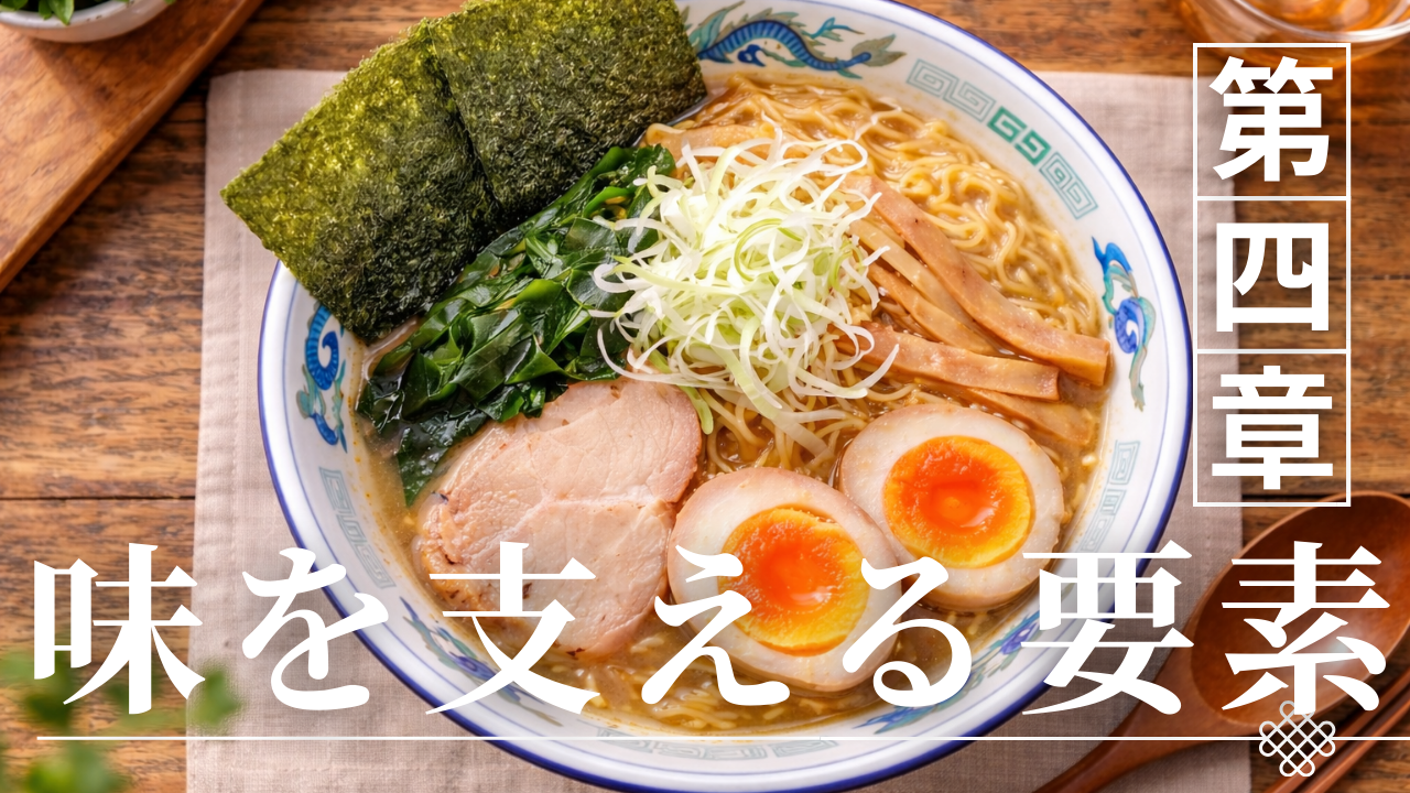 麺は単なるスープの受け皿ではありません。油膜と醤油ダレをまとったスープを効率よく運ぶ“媒体”として設計されています。味の完成度は、スープ単体ではなく、麺との結合によって初めて成立するのです。いる。味の完成度は一点突破ではなく、多層的な条件整合の結果なのである。
