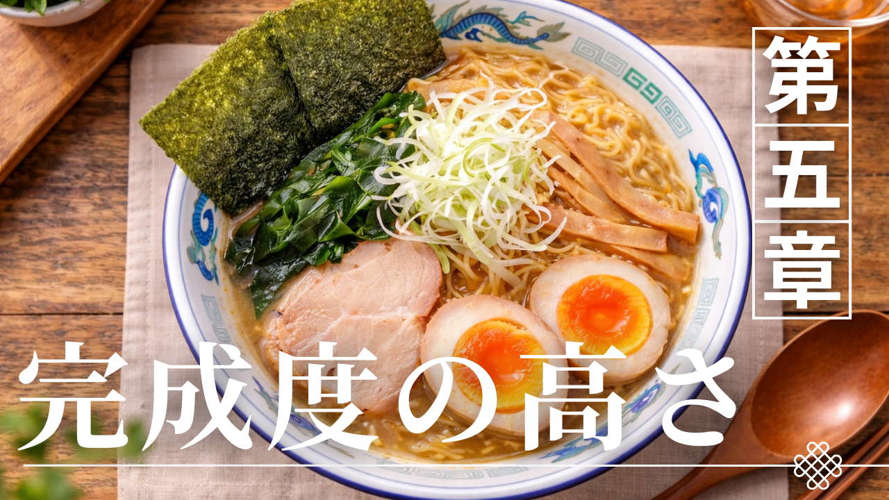 旭川ラーメンの完成度は、単一要素の突出ではなく、要素間の整合、時間軸での一体感、そして再現性と進化性の両立に支えられている。醤油ベースとWスープ構造は、その中心で機能する論理的骨格なのである。