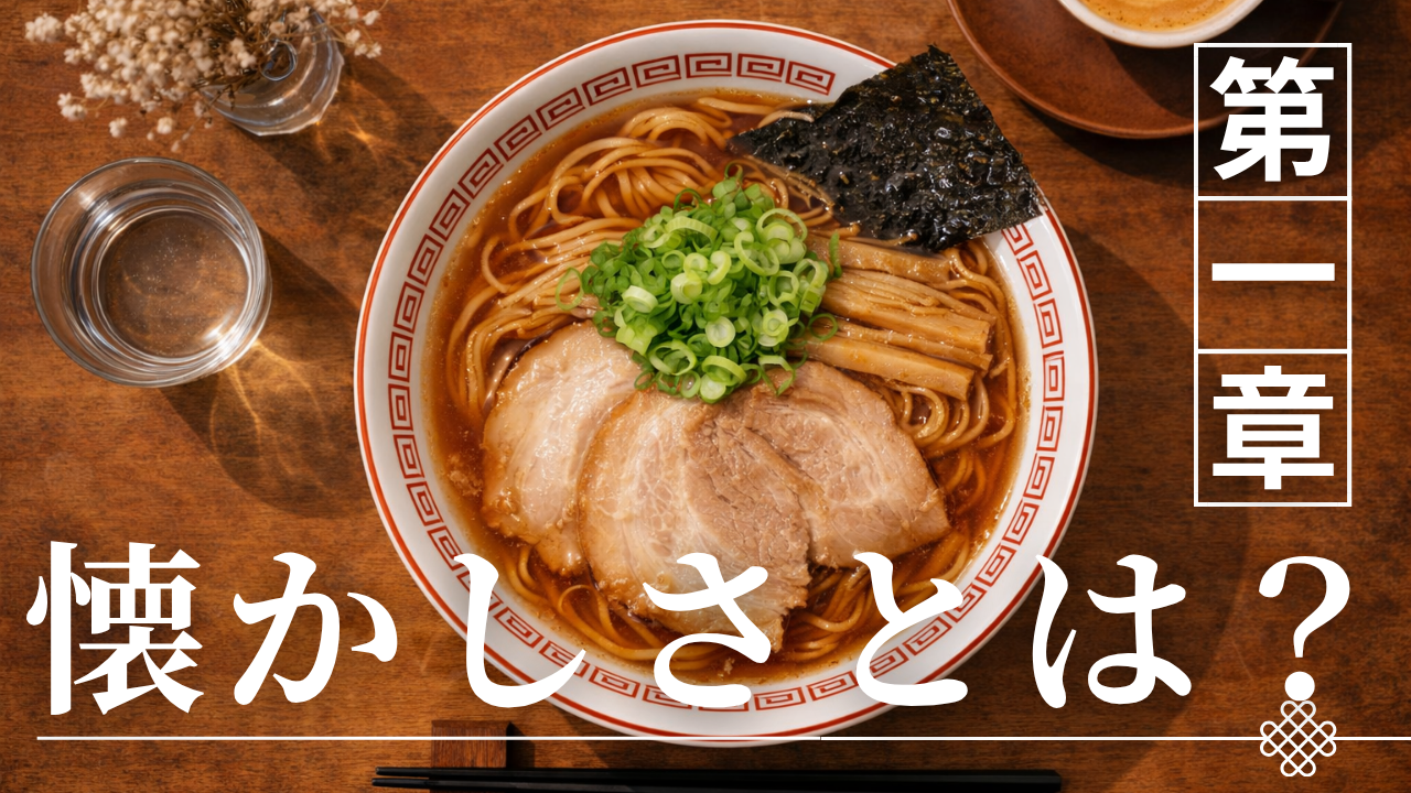 「懐かしさ」という言葉は中華そばを語る際に頻繁に用いられるが、その多くは主観的な感情として扱われ、分析の対象にはなりにくい。しかし実際には、この感覚は個人の思い出に還元されるものではなく、味覚・経験・社会環境が重なり合うことで再現される構造的な現象である。中華そばが持つ「懐かしさ」は偶然ではなく、再現性の高い条件の中で繰り返し体験されることで形成されている。本章では懐かしさを感情ではなく構造として捉え、その成立条件を分解する。