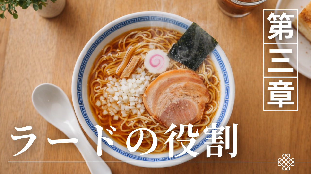 八王子ラーメンにおけるラードの役割は、単なる油分の追加ではなく、味覚体験そのものを設計する中核的な要素として位置づける必要がある。一般的にラーメンにおける油はコクを補う補助的な存在として語られることが多いが、八王子ラーメンの場合はスープ構造の一部として組み込まれており、その有無によって全体の印象が大きく変化する。特に醤油清湯という軽やかなベースに対してラードが加わることで、味の立体感や持続性が生まれ、単調になりがちな構成を補強している。このようにラードは味・香り・温度という複数の要素を同時に制御する「機能装置」として働いており、八王子ラーメンの成立において不可欠な存在である。本章ではラードの役割を分解し、その機能がどのように全体構造に影響を与えているのかを整理する。