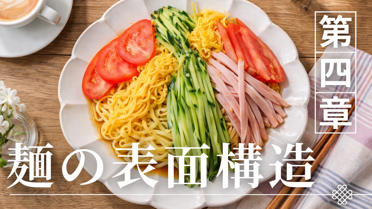 冷やし中華では麺の表面構造がタレの絡み方に大きく影響する。麺の表面が適度に滑らかであると、タレは均一に広がりやすく、味のムラが少ない料理になる。一方で表面が粗すぎる場合にはタレが偏って付着しやすく、味のバランスが崩れることもある。そのため冷やし中華では、滑らかさと適度な弾力を持つ麺が適しているとされている。