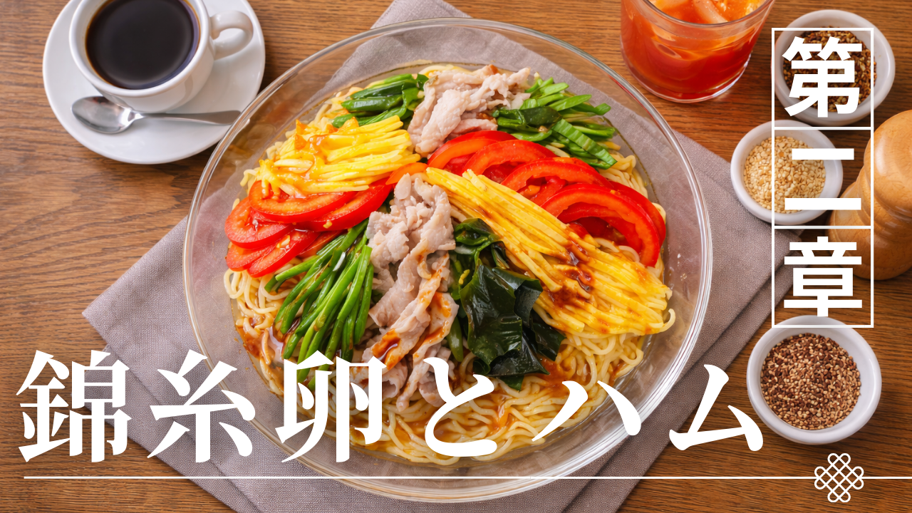 冷やし中華の定番具材として挙げられるのが錦糸卵とハムである。この二つは見た目の彩りを作るだけでなく、料理にタンパク質とコクを加える重要な要素となっている。冷やし中華は酢を使ったさっぱりしたタレが特徴であるため、味が軽くなりすぎる可能性があるが、錦糸卵やハムが加わることで味に厚みが生まれる。また、これらの具材は柔らかな食感を持つため、麺や野菜との食感のバランスを整える役割も持っている。さらに、細切りにされた錦糸卵やハムは麺と一緒に食べやすい形になっており、料理としての食べやすさにも貢献している。このように錦糸卵とハムは、味、栄養、食感、見た目といった複数の面で冷やし中華の完成度を支える具材である。本章では、この二つの具材が料理の中でどのような役割を果たしているのかを整理していく。