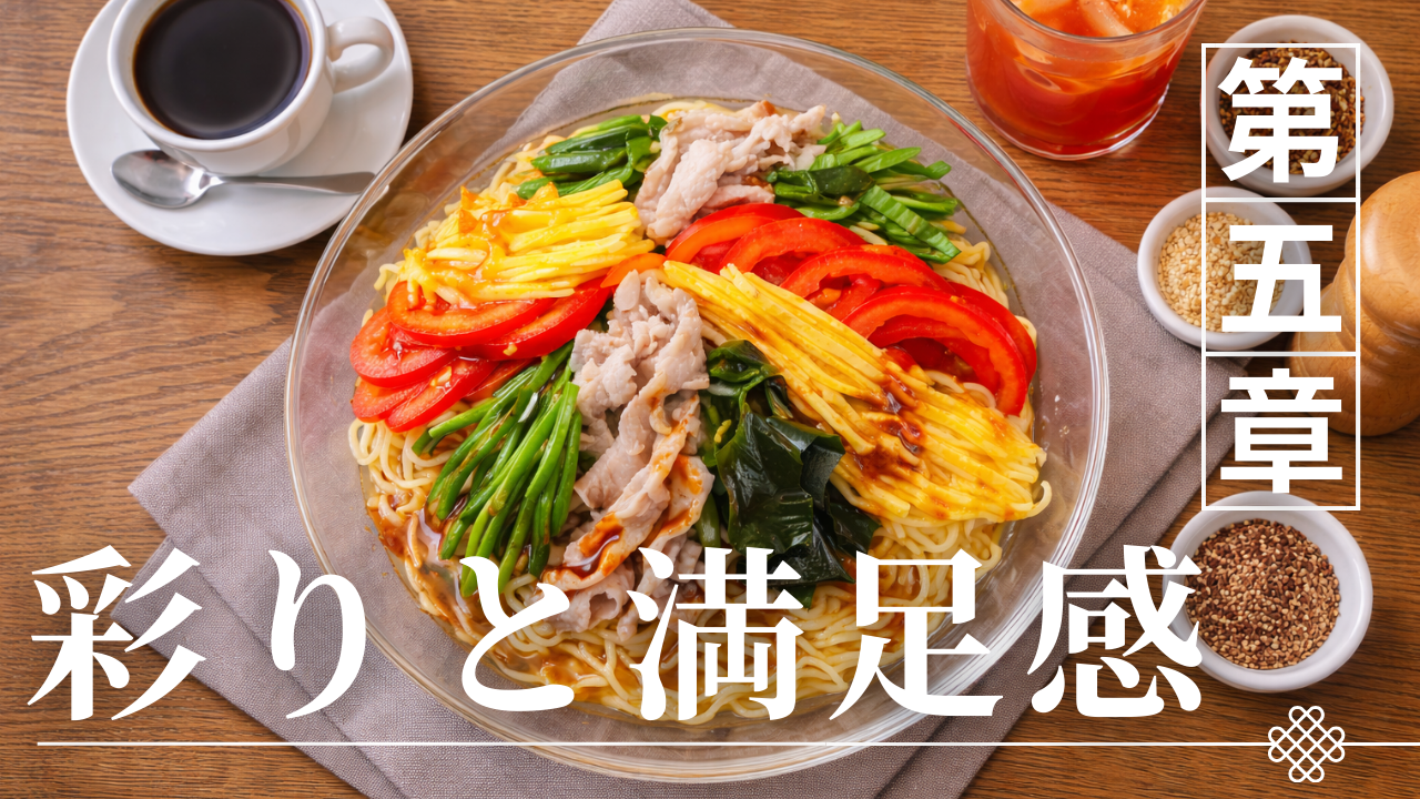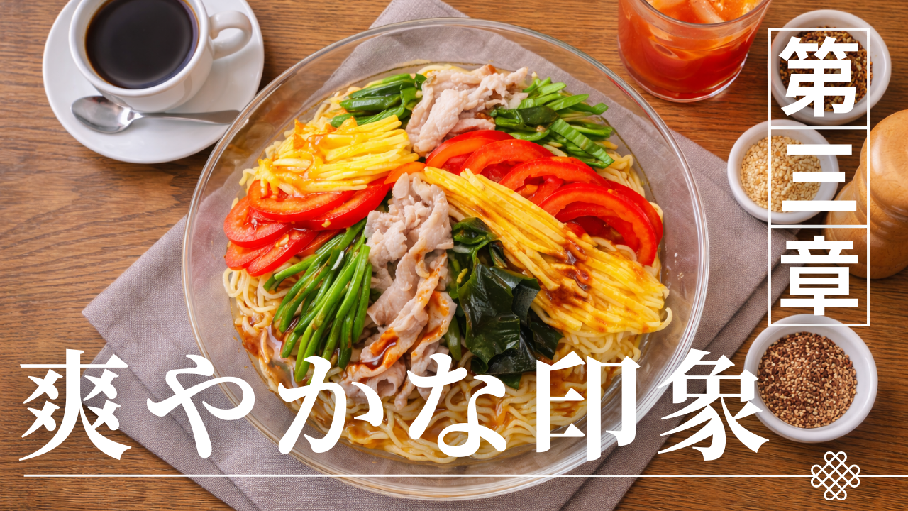 冷やし中華における具材は、味、食感、彩りといった複数の役割を持ちながら、料理構造を支える重要な要素である。麺とタレに具材が加わることで味のバランスが整い、食べ進める楽しさが生まれる。この具材の役割を理解することが、冷やし中華という料理の構造を理解するための重要な視点となる。