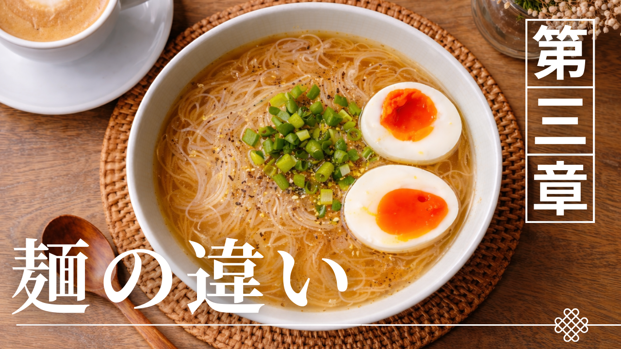 冷やしラーメンと冷やし中華の違いは、スープやタレだけでなく麺の構造にも表れている。どちらも小麦粉を使った麺料理ではあるが、麺の役割や設計は料理の構造によって変化する。冷やしラーメンではスープと一体になって食べることを前提として麺が設計されているのに対し、冷やし中華ではタレを絡めて食べることを前提とした麺の特徴が重視される。そのため麺の食感や形状、味の感じ方にも違いが生まれるのである。本章では、ラーメン麺と冷やし中華麺の特徴を整理しながら、それぞれの料理における麺の役割を解説していく。