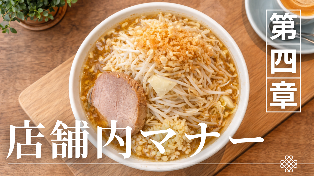 二郎ラーメンの店内マナーは、しばしば「独特」と表現される。しかし実態は、空間効率と回転率を最大化するための行動最適化である。カウンター中心・席間が狭い・少人数オペレーションという条件下では、客同士の動きがわずかに干渉するだけでも全体の流れが滞る可能性がある。そこで自然に共有されるのが、最小限の動作・短時間滞在・簡潔なコミュニケーションという行動様式だ。本章では、店舗内マナーを「雰囲気」ではなく「構造」から読み解く。