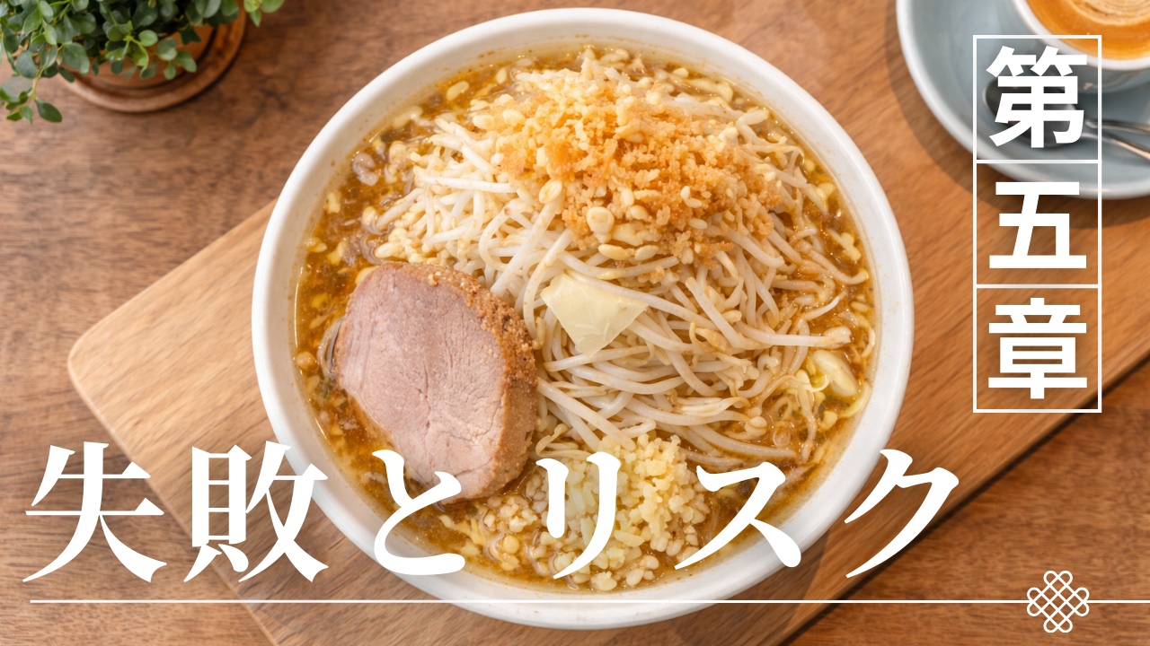 二郎ラーメンにおいて本当に避けるべきなのは、「叱られること」ではない。問題になるのは、構造を理解しないまま意思決定をしてしまうことだ。量の過信、コールの過剰、タイミングの誤認――これらはすべて事前に回避可能なリスクである。二郎は挑戦の場ではなく、調整の場だ。商品設計は重く、オペレーションは同期型、回転率は経営に直結する。この前提を知らないと、心理的な焦りが生まれ、行動がブレる。本章では、初心者が陥りやすい失敗を構造別に分解し、合理的なリスク管理術として整理する。