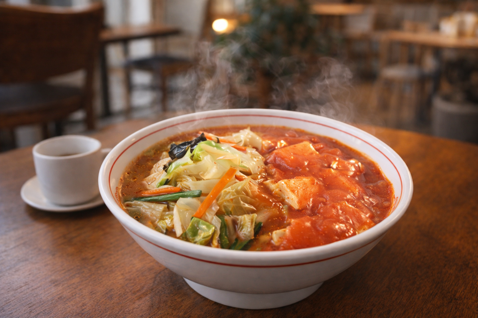 味の設計は、ベーススープの旨味、唐辛子による辛味、油分によるコク、香味野菜による香りなどの要素によって構成される。特に辛味と旨味のバランスが重要であり、カプサイシンによる刺激だけでなく、甘味やコクを加えることで味の奥行きが生まれる。また、太麺やチャーシュー、味玉などのトッピングが加わることで、食べ応えのある満足感の高い一杯となる。