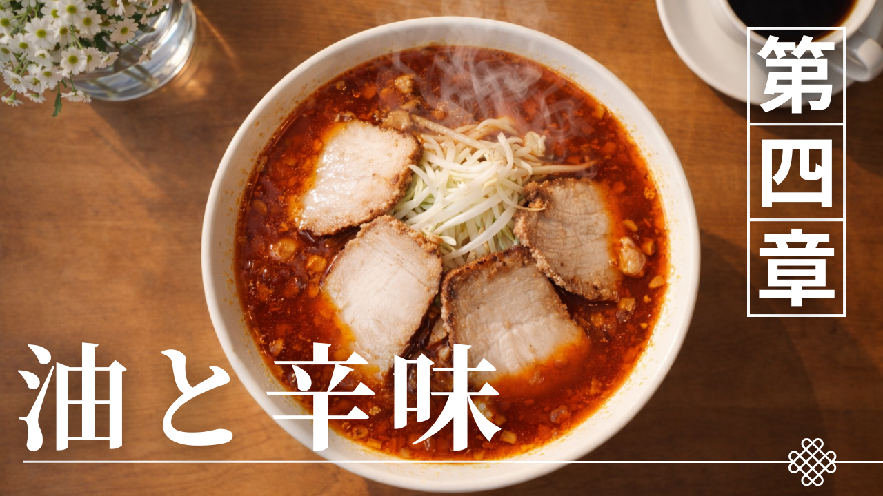勝浦タンタンメンのスープは単に辛味の強いラーメンではなく、油と辛味が組み合わさることで成立する立体的な味の構造を持っている。一般的に辛い料理は唐辛子の量によって辛さを作る場合が多いが、勝浦タンタンメンの場合はラー油という油脂を介して辛味を広げている点に特徴がある。油は味の密度を高め、香りを保持し、さらにスープの温度を保つ働きを持つため、辛味と結びつくことで味の印象を強くする効果がある。つまりこのスープは、醤油スープの基盤の上にラー油の油層が重なり、そこに挽き肉の脂や玉ねぎの甘味が加わることで複数の味の層が形成されている。このような構造によって、勝浦タンタンメンのスープは単なる激辛ではなく、刺激とコクが同時に存在する立体的な味として成立している。本章では、油と辛味がどのように組み合わさりスープの構造を作っているのかを整理していく。