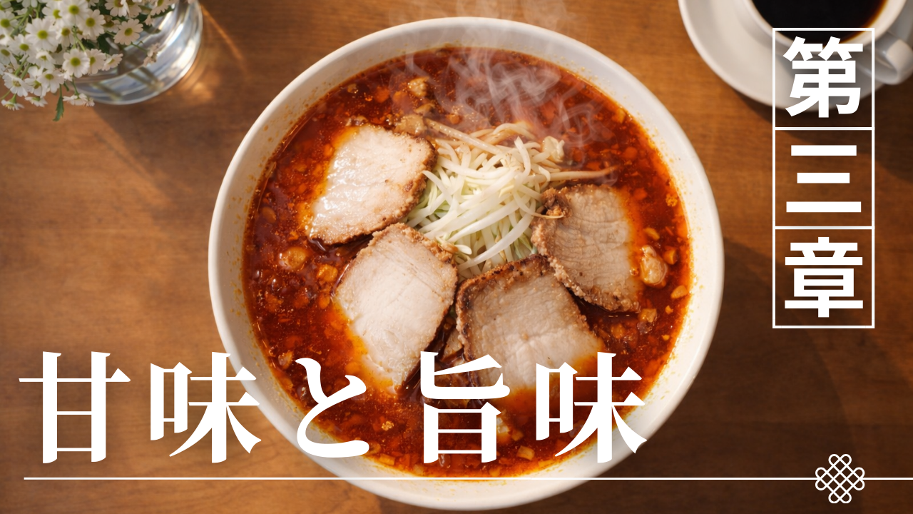 料理の味は強い個性だけでは成立しない。どれほど特徴的な味であっても、それを支えるバランスがなければ料理としての完成度は高まらない。勝浦タンタンメンのスープでは、ラー油による辛味が料理の個性を作っている一方で、玉ねぎの甘味と挽き肉の旨味がその刺激を支える役割を持っている。このような味の対比によって、辛味は強く感じられながらも、料理としての調和が保たれている。つまり刺激とバランスが同時に存在することが、このスープの特徴となっている。
