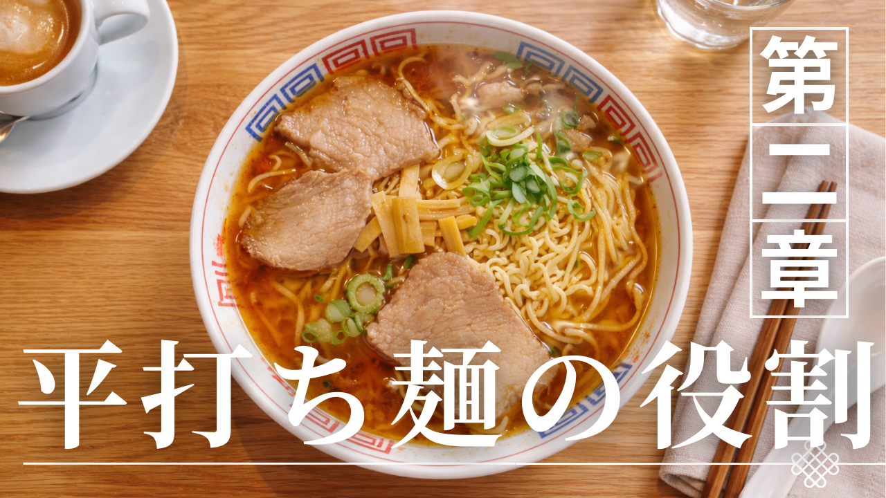 このような構造によって、平打ち麺はラーメンの味をより強く感じさせる役割を持つ。つまり平打ち麺は、麺とスープの関係を強めるための機能的な形状なのである。