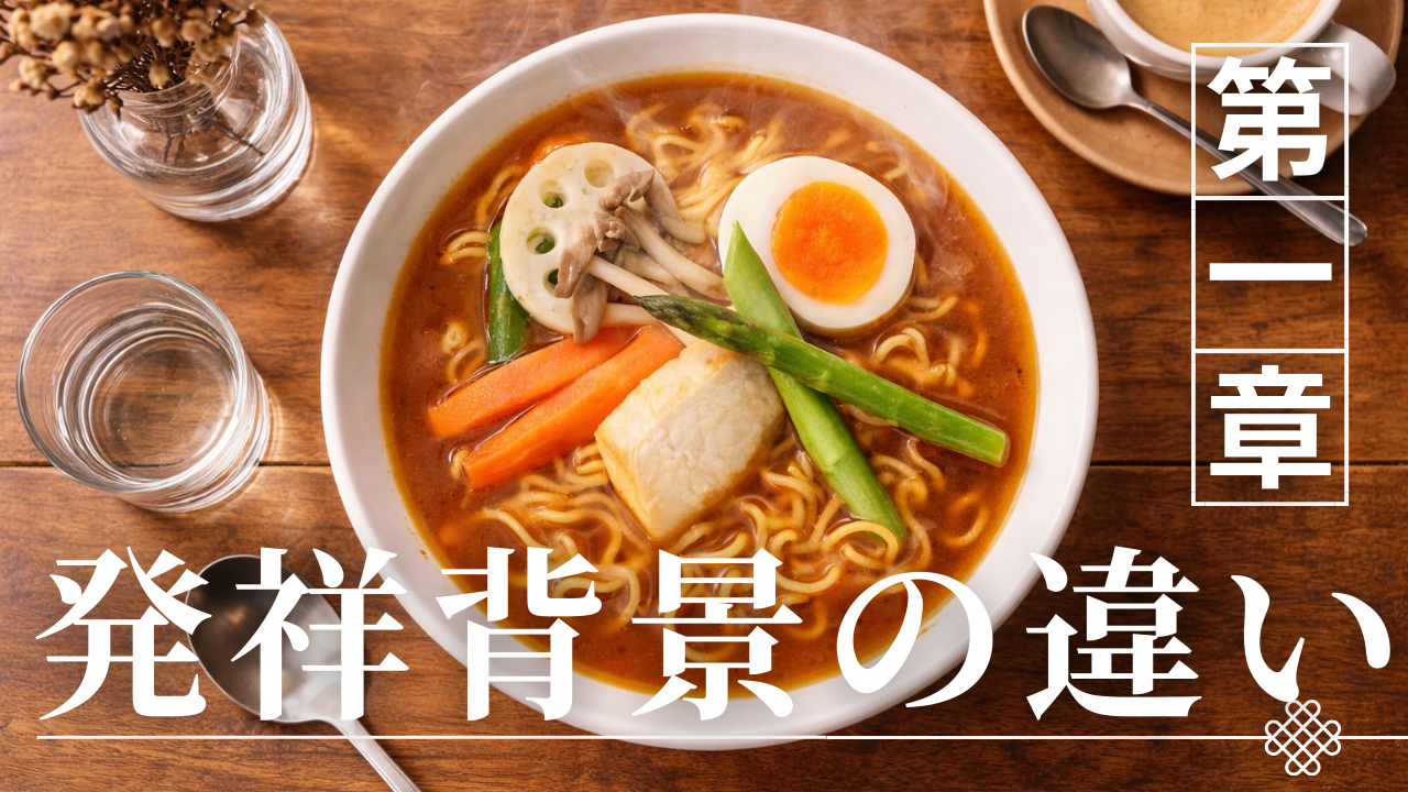需要構造の違いが、文化的位置づけを決定づける。総じて、両者は味噌を基盤としながらも、成立目的、都市機能、流通拡張性、需要構造という基礎条件が異なる。発祥背景の差異が、その後の味設計とブランド形成の方向性を規定している。