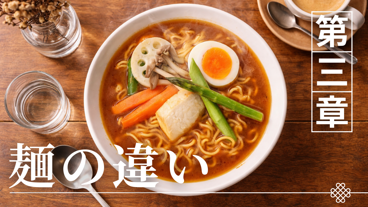 室蘭カレーラーメンと札幌味噌ラーメンは、いずれも中太系の麺を採用することが多いが、その設計思想と物性バランスには明確な差異がある。札幌味噌ラーメンは高温・高油脂の濃厚スープに耐える強弾性と保温性を重視する。一方、室蘭カレーラーメンは中粘度スープとの絡みと香りの運搬効率を優先する傾向がある。見た目が近似していても、直径設定、加水率、ちぢれ強度、時間経過耐性の思想が異なる。本章では、直径設計、加水率と弾性、ちぢれ形状、吸水挙動という四つの観点から構造的に整理する。