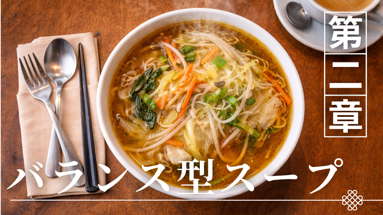 サンマーメンの味の特徴を考えるとき、多くの人はまず野菜あんかけの存在に注目する。しかし料理構造を分析すると、実際に全体の味のバランスを支えているのはスープであることが分かる。サンマーメンのスープは基本的に醤油ベースで比較的あっさりした味に設計されているが、これは偶然ではなく料理全体の構造を成立させるための重要な要素である。もしスープが濃厚すぎれば、上に乗る野菜餡と味がぶつかり料理全体が重くなってしまう。一方で軽すぎるスープでは麺料理としての満足感が不足してしまう。つまりサンマーメンのスープは、餡の旨味と麺の存在感を受け止めるためのバランス型スープとして設計されているのである。本章では、醤油スープがどのような役割を持ち、なぜこの料理であっさりとした味が採用されているのかを料理構造の視点から整理していく。