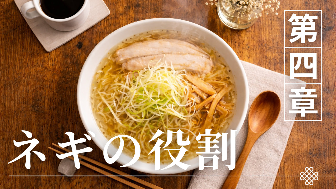 ネギの最も重要な役割の一つが、ラーメンの味を引き締めることである。淡麗醤油スープは穏やかな味わいであるため、味の輪郭がぼやけてしまう可能性もある。そこにネギの香りや辛味が加わることで、味の印象がはっきりする。また、ネギを麺と一緒に食べることで、味に軽い変化が生まれる。こうした変化が食事のリズムを作り、一杯を最後まで飽きずに食べられる要因となる。