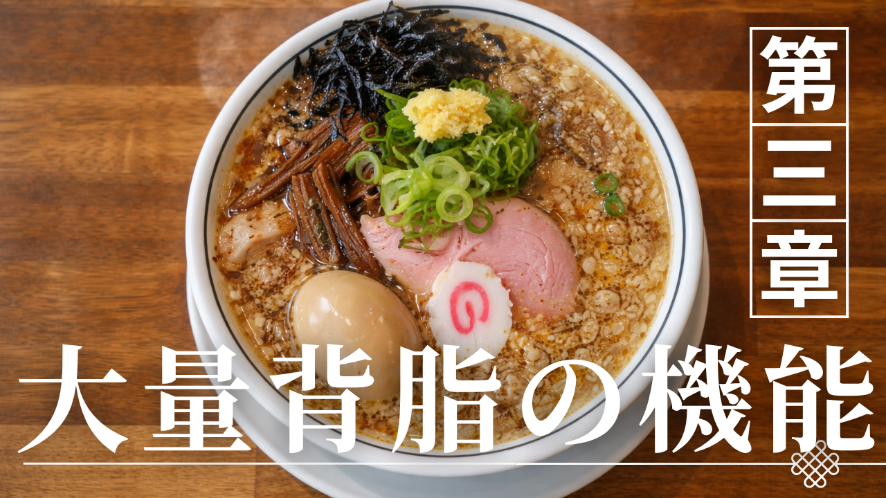 背脂ちゃっちゃ系ラーメンにおいて「大量の背脂」は単なるインパクト要素ではなく、味覚・物理・心理の三層にまたがる機能的設計として位置づけられる。脂が多いという事実だけではこのスタイルの本質は説明できず、重要なのは「なぜ大量である必要があるのか」という点である。背脂は少量でも効果を持つが、大量にすることで初めて成立する機能が存在する。具体的には、味の厚みの形成、温度保持による体験の維持、そして視覚的満足感の強化といった要素である。これらは相互に連動しており、どれか一つでも欠けると背脂ちゃっちゃ系特有の体験は成立しない。本章では、大量背脂の役割を分解し、その設計意図を明確にする。