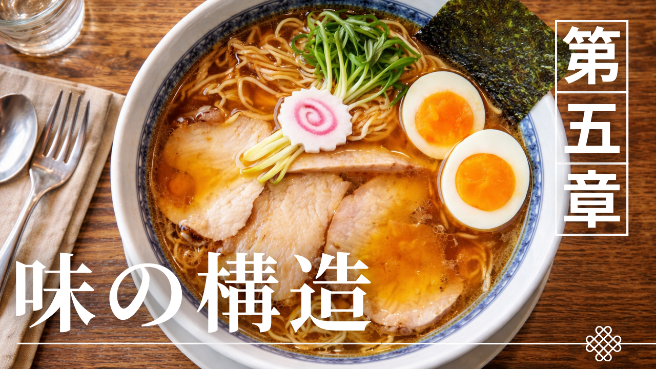 白河ラーメンの最大の特徴は、ラーメン全体の味の構造が「麺を中心」に設計されている点にある。多くのラーメンでは濃厚なスープや強い味のタレが主役として語られることが多いが、白河ラーメンでは多加水の手打ちちぢれ麺が味の中心的な役割を持っている。この麺は弾力のある食感と小麦の風味を持ち、ラーメンを食べたときの印象を大きく左右する。そのためスープは麺を引き立てる役割として設計され、鶏主体の淡麗醤油スープという比較的軽やかな味の構造が採用されている。また、具材も麺とスープのバランスを崩さないように構成されることが多い。このように白河ラーメンは、麺、スープ、具材という要素が互いに補完し合うことで味が完成する構造を持っている。本章では、白河ラーメンの味の構造を整理しながら、麺を中心としたラーメン設計がどのように成立しているのかを読み解いていく。