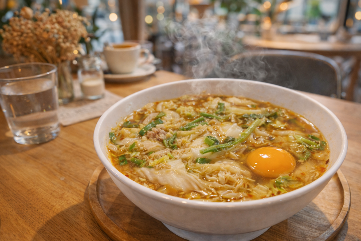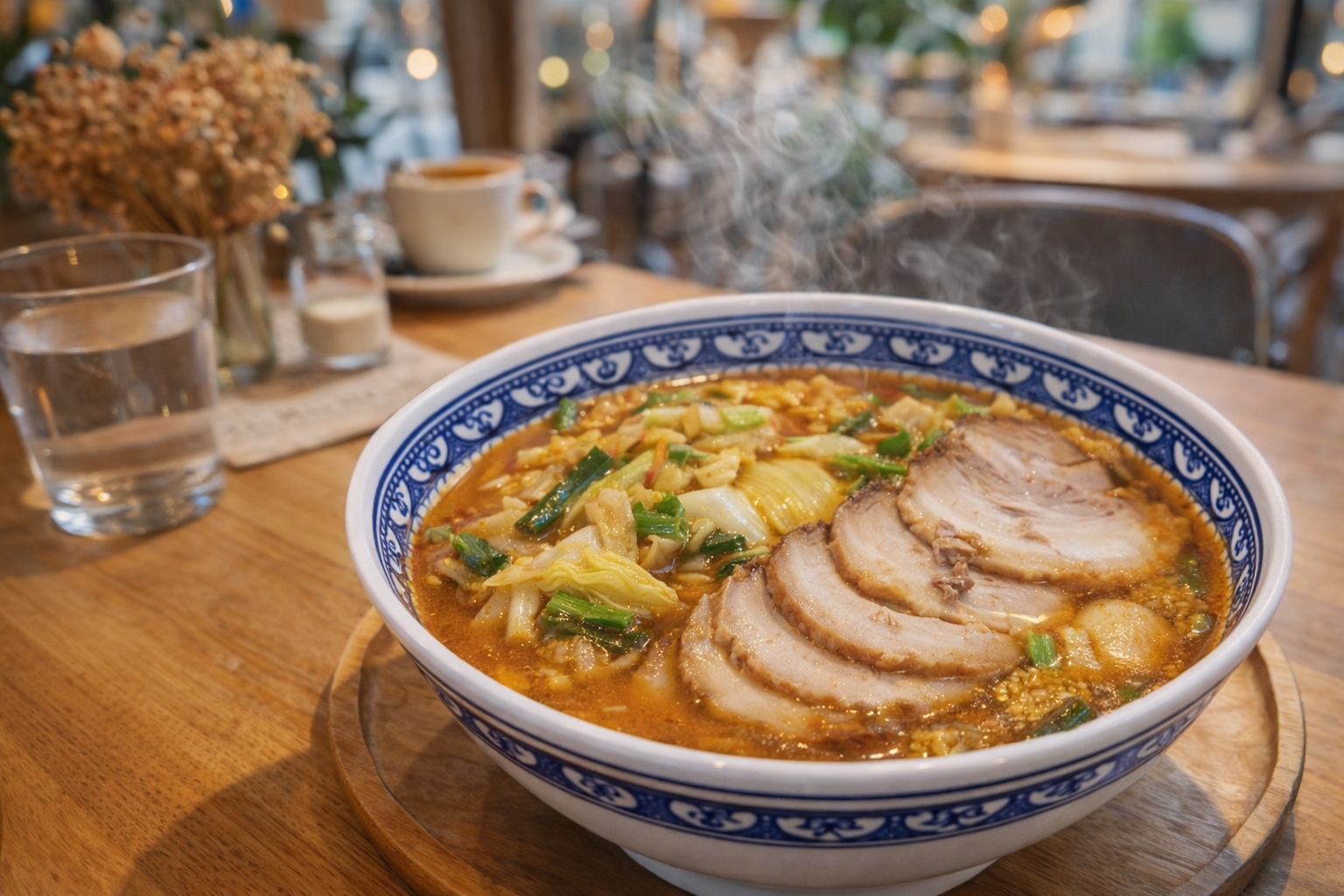さらに、強火で炒めた具材の香ばしさがスープに溶け込み、単なる醤油ラーメンとは異なる立体感を形成します。野菜の水分がスープを薄めるのではなく、旨味の拡張として機能するため、最後まで飽きずに食べられます。
