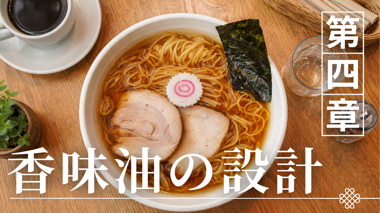 東京醤油ラーメンのスープ構造において、香味油は最も見落とされやすい要素であるが、実際には味の完成度を左右する重要な役割を担っている。出汁と醤油ダレが味の骨格を形成するのに対し、香味油はその上に「体感的なコク」と「香りの広がり」を付加する要素である。特に、スープの表面に存在する油は、温度保持や香りの揮発制御にも関与しており、味覚だけでなく嗅覚や触覚にも影響を与える。本章では、香味油の機能と設計を分解し、その役割を構造的に整理する。