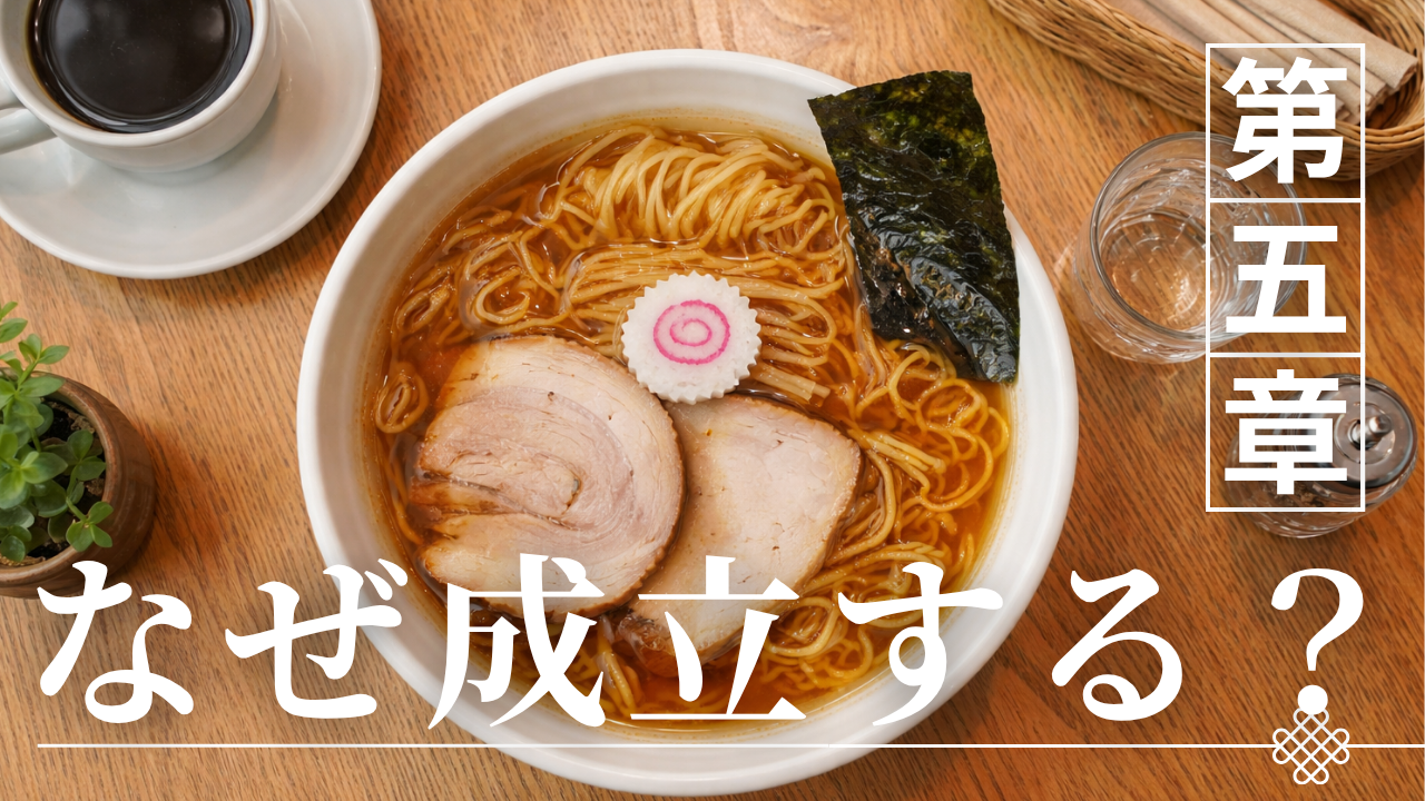 東京醤油ラーメンのスープが「シンプルでありながら成立する理由」は、各要素の質の高さだけではなく、それらがどのように統合されているかという設計思想にある。出汁・醤油ダレ・香味油はそれぞれ独立した役割を持ちながらも、最終的には一つの味として調和する必要があるため、その統合には精密なバランス調整が求められる。重要なのは、どれか一つを強くするのではなく、全体として最適な状態に収束させることである。本章では、この「統合の設計」を分解し、なぜ東京醤油ラーメンのスープが成立するのかを構造的に整理する。
