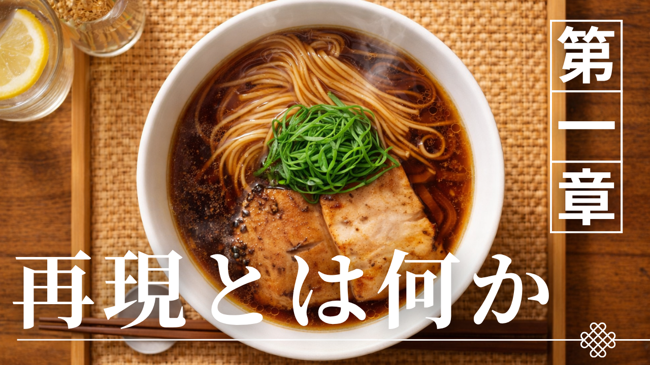 東京醤油ラーメンを再現するという行為は、単にレシピをなぞることではなく、出汁・醤油ダレ・香味油・麺という複数要素の役割とバランスをどこまで再構築できるかという問題である。特に重要なのは、家庭と業務では使用できる設備、時間、素材の自由度が大きく異なるため、同じ手法をそのまま適用することができない点にある。この前提を理解せずに再現を試みると、部分的には近づいても全体としての一体感が成立しない。本章では、再現の定義を構造的に整理し、家庭と業務の違いがどのように再現性へ影響するのかを明らかにする。