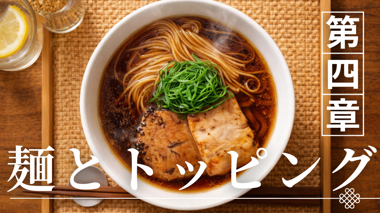 東京醤油ラーメンの再現において、スープ・タレ・油の設計が整った段階でも、それだけでは完成とは言えない。最終的な味と体験は、麺とトッピングをどのように組み合わせるかによって決定されるため、この工程は「仕上げ」ではなく「構造の統合」として捉える必要がある。特に重要なのは、麺がスープをどのように運ぶか、具材がどのように味や食感を補完するかという点であり、この設計が崩れると全体のバランスも崩れる。本章では、麺とトッピングの役割を分解し、家庭・業務それぞれでの再現方法を整理する。
