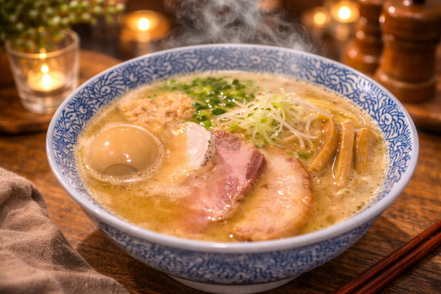 鶏白湯ラーメンのトッピングと具材は、濃厚な鶏スープの旨味とバランスを取る役割を持つものが多い。スープがクリーミーでコクが強いため、肉の旨味や香味野菜、食感のアクセントとなる具材を組み合わせることで、一杯の完成度が高まる。