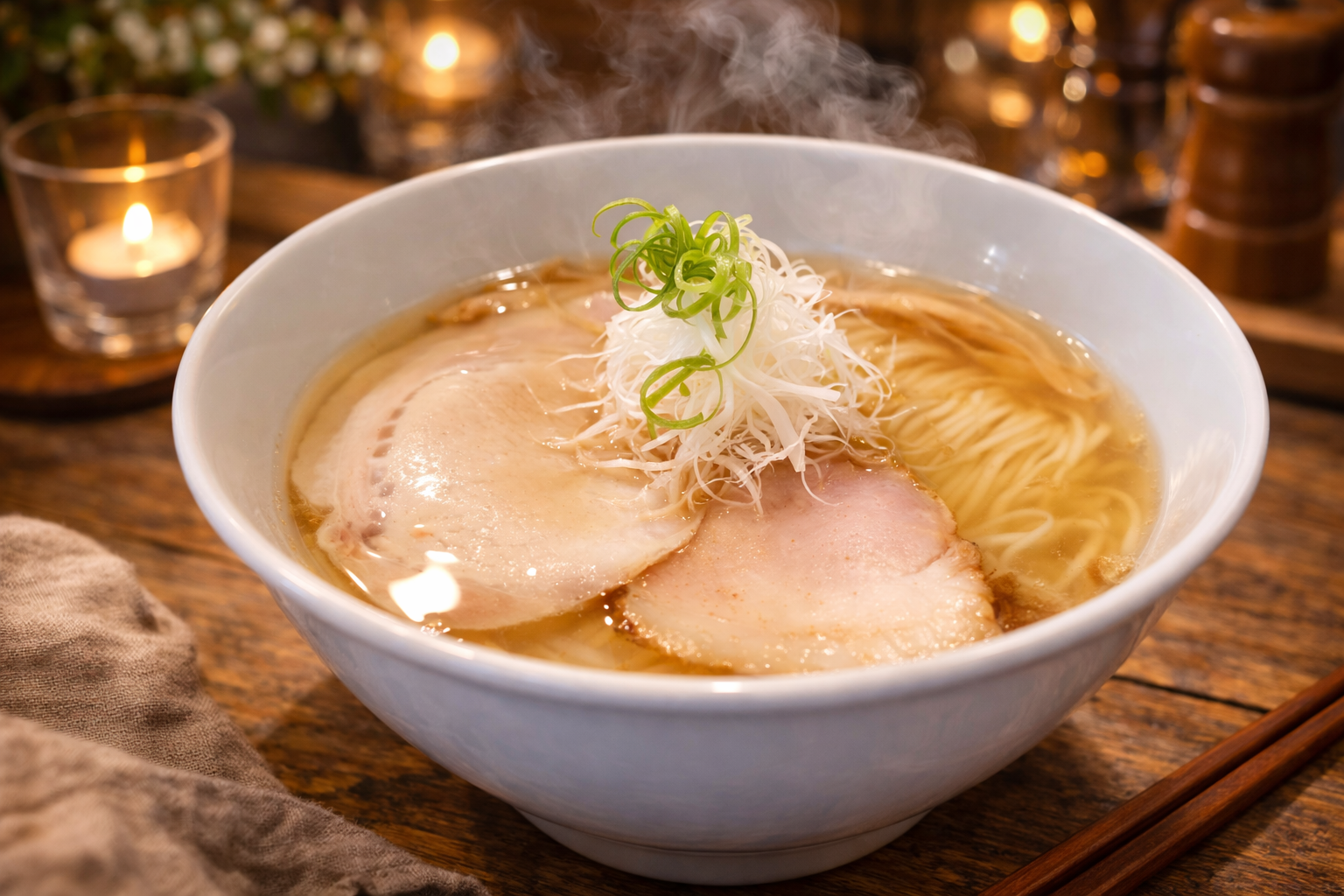 次に加わるのが**調味ダレ(かえし)**である。醤油ダレや塩ダレを使って塩分と旨味のバランスを整え、スープの味の輪郭を作る。鶏白湯スープは旨味が強いため、タレは過度に強くせず、鶏の風味を引き立てる設計にすることが多い。