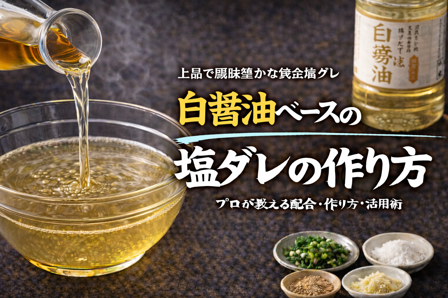 白醤油ベースの塩ダレとは 白醤油ベースの塩ダレとは、白醤油の淡い色と上品な旨味を生かしつつ、塩味を軸に風味を整えた透明感のあるタレのことです。素材の色を濁らせず、すっきりとしたコクと香りを与えられるため、鶏清湯や魚介スー […]