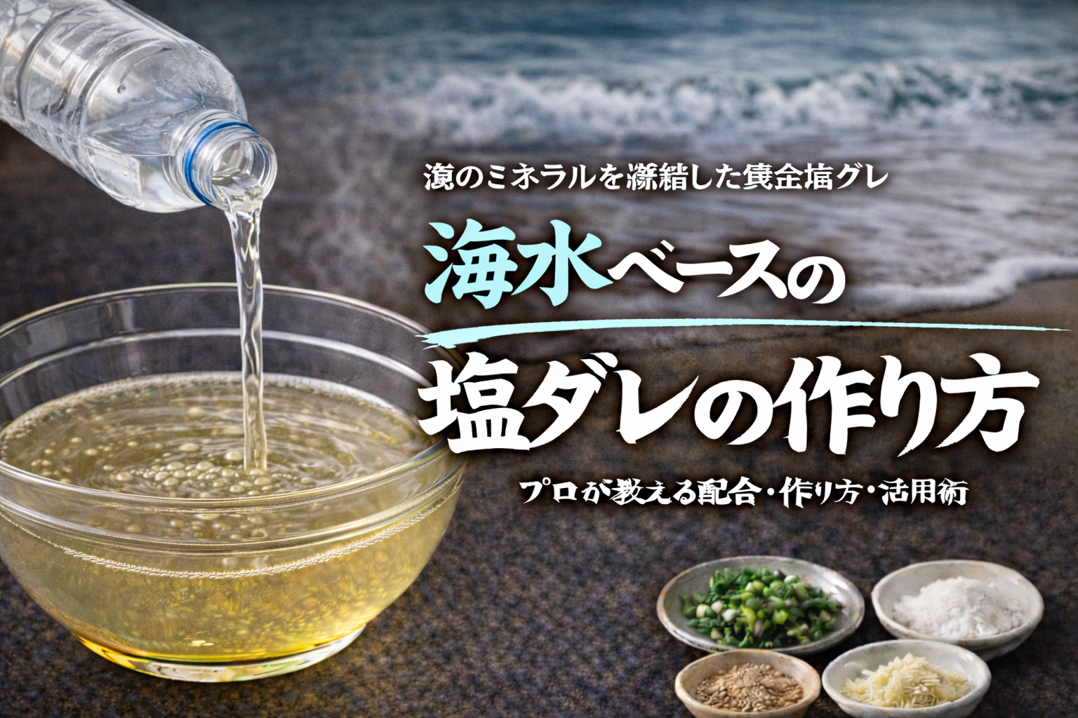 海水ベースの塩ダレとは 海水ベースの塩ダレとは、海水に含まれるミネラルを活かした風味豊かな調味料です。作り方は、海水を一度ろ過して不純物を取り除き、弱火で加熱して適度に水分を飛ばします。そこににんにくやごま油、レモン汁な […]