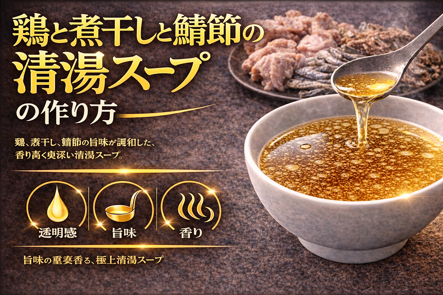 鶏と煮干しの清湯スープとは 鶏ガラや丸鶏の旨味に煮干しのだしを合わせた、透明で澄んだスープ。あっさりしながらもコクがあり、鶏の甘みと魚介の香りが調和する上品な味わいが特徴で、ラーメンによく使われる。素材の風味を生かした繊 […]