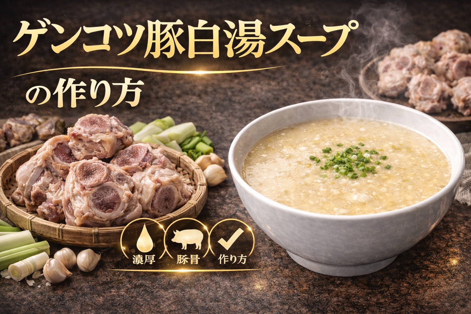 ゲンコツ豚白湯スープとは ゲンコツ豚白湯スープとは、豚の大腿骨(ゲンコツ)を強火で長時間煮込み、骨髄や脂を乳化させて白濁させた濃厚スープです。コク深くクリーミーな味わいが特徴で、ラーメンをはじめ多くの料理のベースとして親 […]