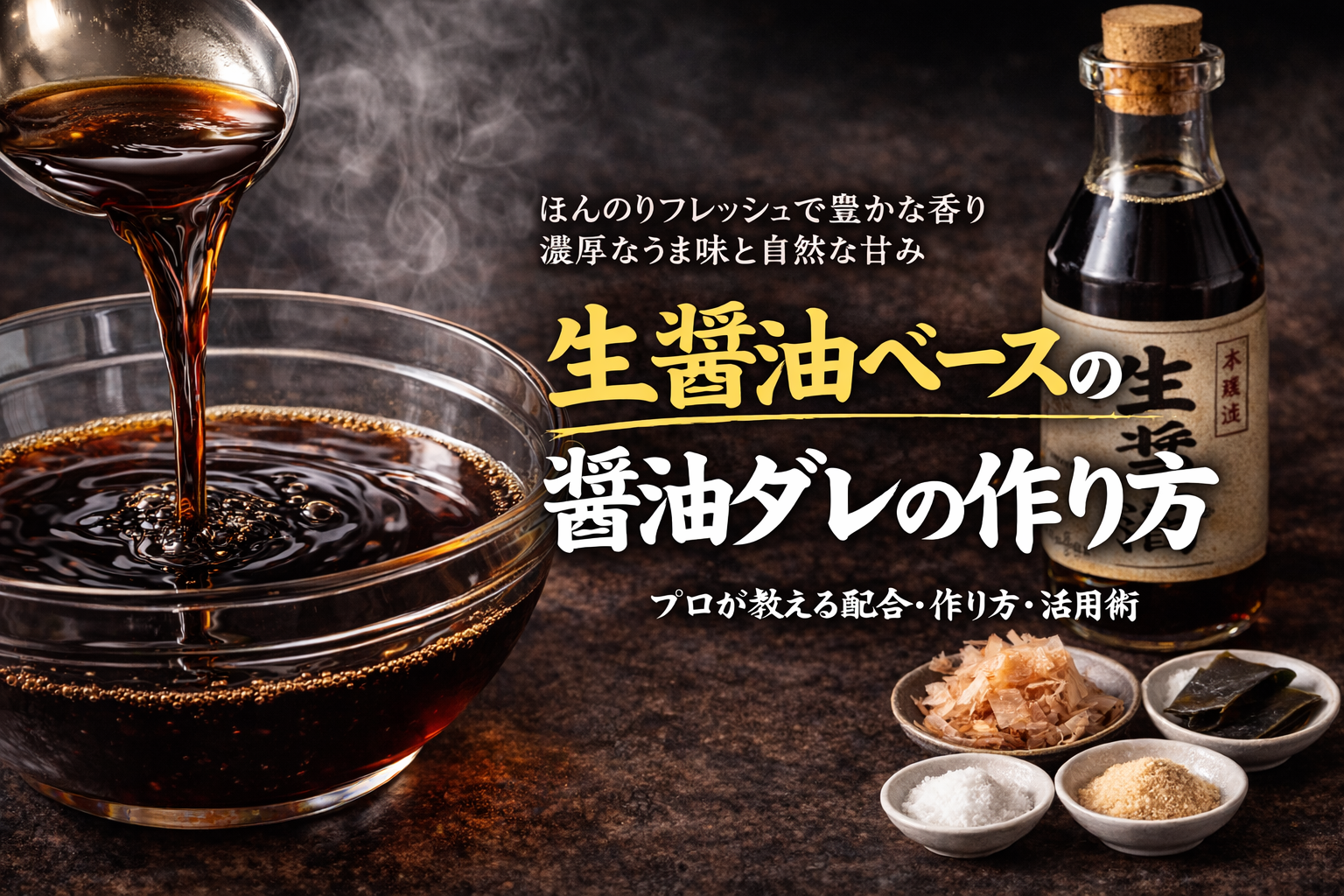 生醤油ベースの醤油ダレとは 生醤油ベースの醤油ダレとは、加熱処理を抑えた生醤油を主体にした調味タレのことです。フレッシュで立体的な香りとキレのある後味が特徴で、スープに合わせることで味の輪郭を整えます。出汁やみりんなどを […]