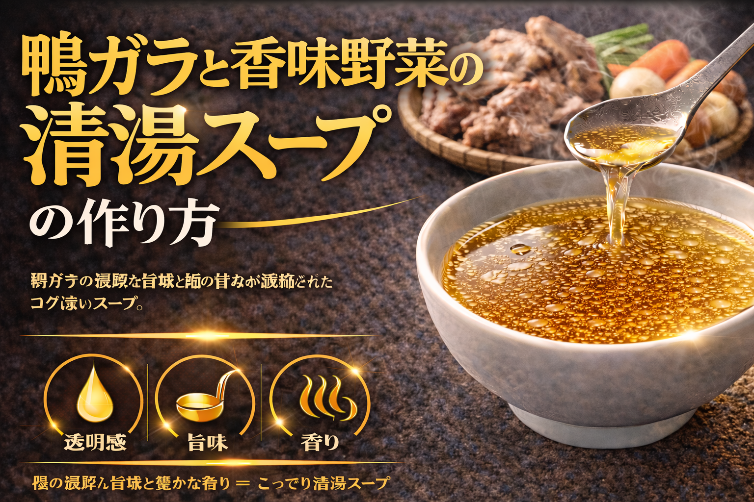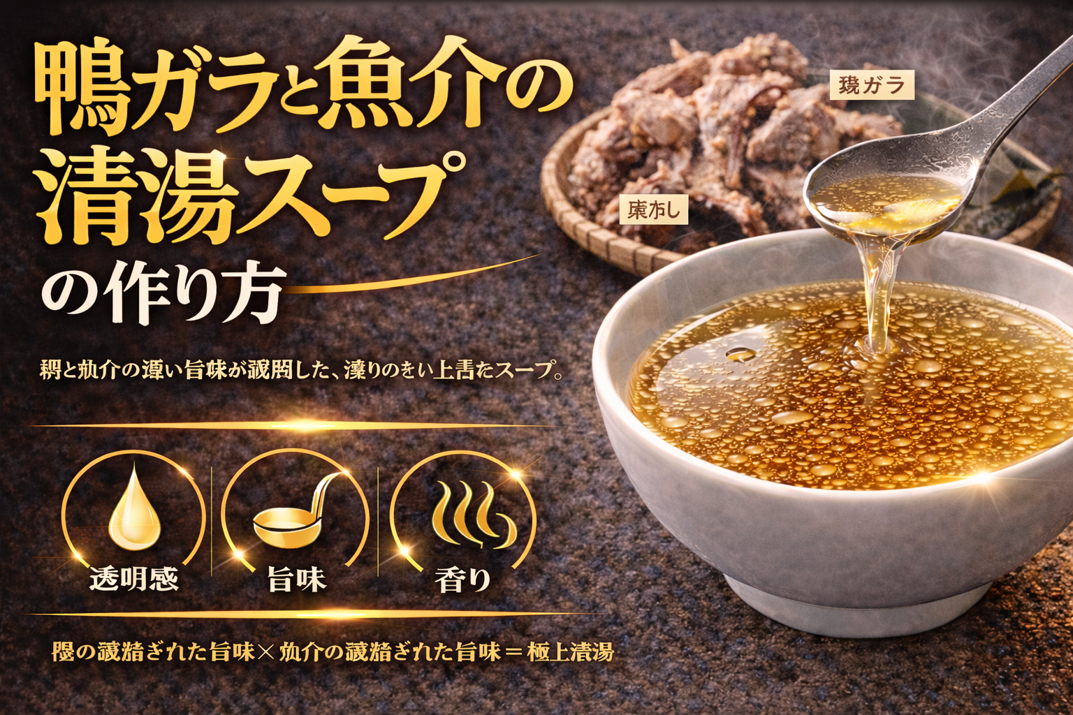 鴨ガラと香味野菜の清湯スープとは 鴨ガラと香味野菜の清湯スープとは、鴨の骨から抽出される動物性の旨味と、玉ねぎやねぎなどの香味野菜が持つ甘み・香りを組み合わせ、透明感を保ちながら設計された出汁である。濁らせずに炊き上げる […]