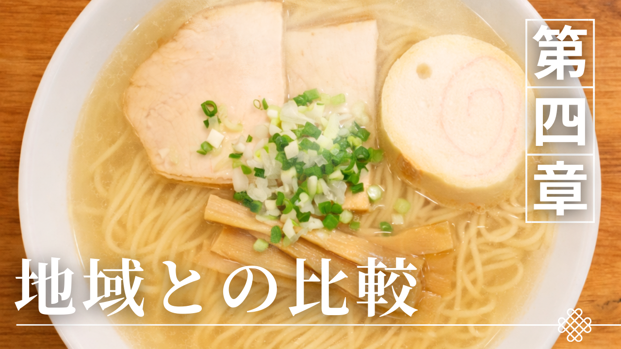 という文化的な強度にもつながっている。次章では、こうした塩ラーメンの構造を踏まえ、なぜ味噌や醤油が函館の主流にならなかったのかを、他地域との比較から整理していく。は、こうした違いが生まれた背景として、地域性や都市の成り立ちに注目していく。