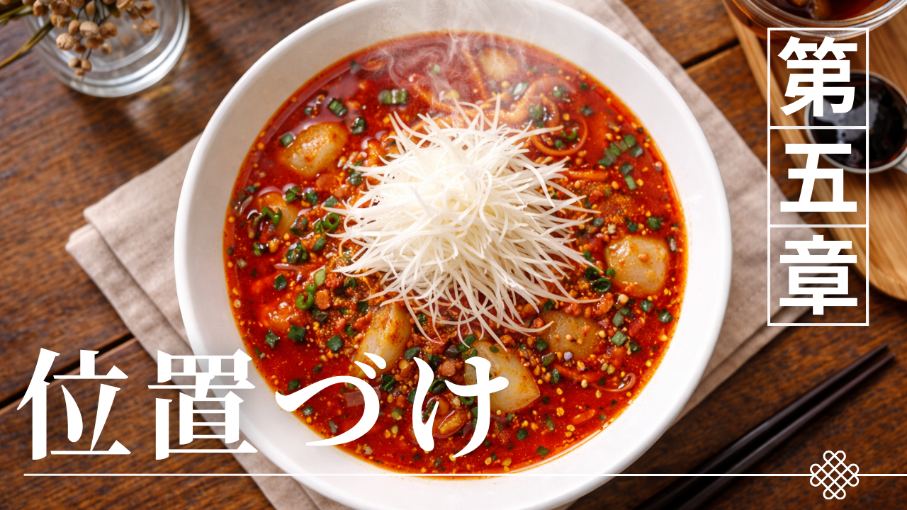 ここまで、一般的な担々麺との違いを構造的に整理してきたが、最後に残る問いはシンプルだ。勝浦タンタンメンは、結局のところ「何料理」なのか。本章では、担々麺という枠をいったん離れ、ジャンルとしての位置づけを考える。