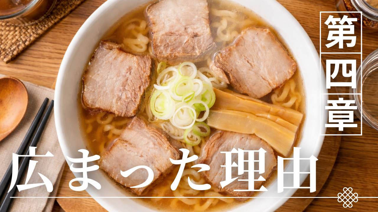 こうした条件を満たす料理として、ラーメンは非常に合理的だった。そのため、喜多方ラーメンは「珍しい料理」としてではなく、生活に組み込まれる食事として定着していく。この段階で、喜多方ラーメンはすでに一過性の流行ではなく、後に全国へ広がるための“土台”を持っていたと言える。