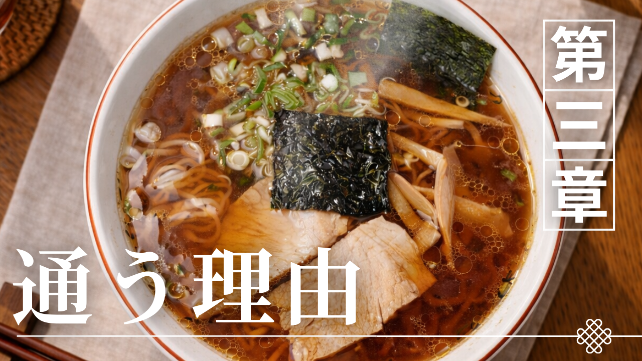 まるひらのラーメンを語るとき、しばしば「昔ながら」「シンプル」といった言葉が使われる。しかしそれらは、結果を表した表現にすぎない。重要なのは、なぜその味が長期間にわたって成立し続けてきたのかという点だ。本章では、まるひらの味の設計を分解し、「変えなかったこと」がどのような意味を持っていたのかを整理する。