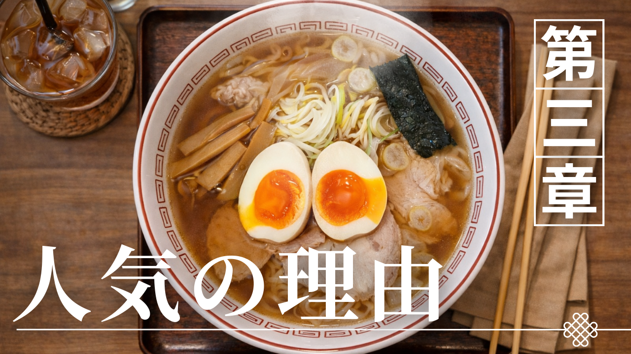 これらの条件を満たす店は意外に少ない。照月の人気とは、突出した個性ではなく、期待値調整の巧みさによって成立している現象なのである。照月の人気は偶然ではない。次章では、その基盤となっている「味の特徴」を、酒田ラーメンの王道という視点から具体的に整理していく。