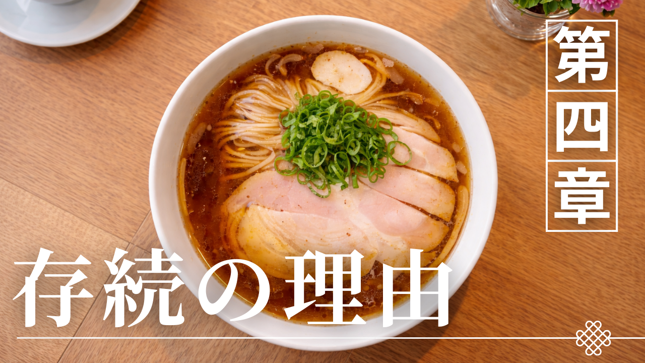 戦前・戦後、高度経済成長期を経てもなお、東京醤油ラーメンの老舗名店は現在まで暖簾を守り続けています。流行は幾度も移り変わり、濃厚系や専門特化型が注目を集めてきました。それでも来集軒、万福、春木屋といった店が消えなかったのはなぜか。本章では、味の設計だけでなく、立地や経営姿勢まで含めて「残る構造」を整理します。