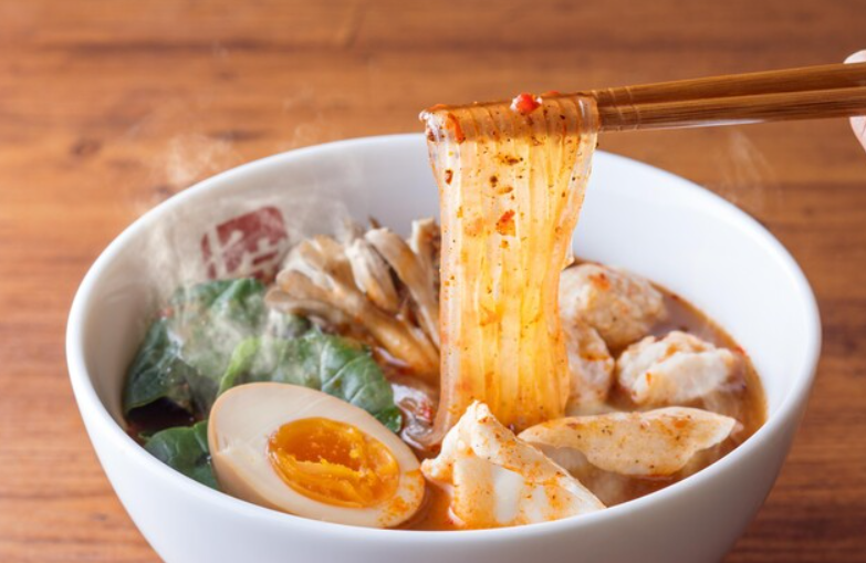 春雨はスープをしっかり吸い込み、つるっとした喉ごしとモチモチ食感が特徴。中華麺はコシがあり、スープの旨味をしっかりと包み込みます。こんにゃく麺はカロリーが低く、ダイエット中の方にもおすすめです。