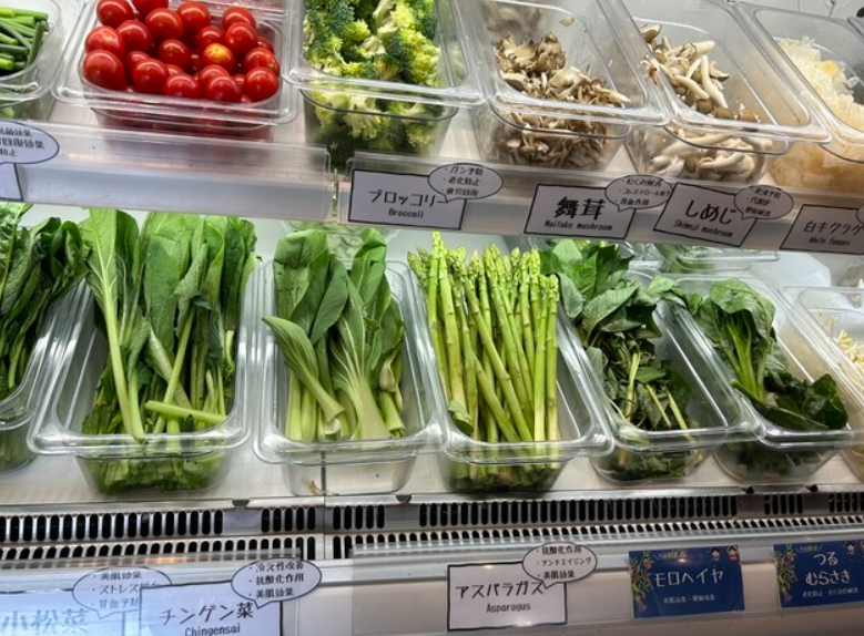 1. 具材が自由にとれる:冷蔵ケースから好きな具材を選び、自分だけの組み合わせが楽しめる。