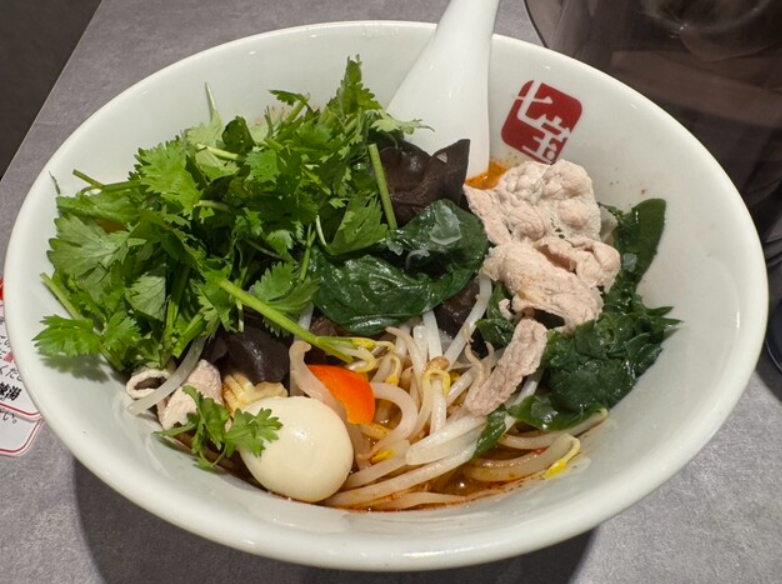 鶏ガラ×薬膳スパイスの旨味が絶妙に調和し、辛さの中にまろやかさを感じる七宝ならではのスープが特徴です。