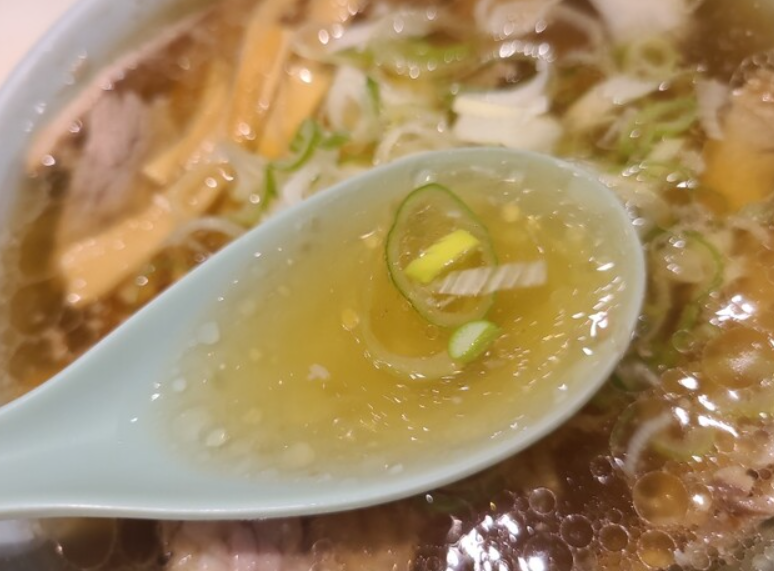 実際に「ちえちゃんラーメン」を食べてみると、まずスープの香りと見た目に圧倒されます。レンゲでひと口飲むと、醤油のシャープなキレ、豚骨の深み、背脂のまろやかさが絶妙に調和し、思わずもう一口とレンゲが止まらなくなる中毒性を感じました。続いて麺をすすれば、もちもちの太麺がスープをしっかり抱え込み、噛むごとに小麦の香りと旨味が広がります。チャーシューは分厚くジューシーで、スープとの相性が抜群。さらに野菜のシャキシャキ感が口の中をリフレッシュしてくれるため、最後まで食べやすく感じられます。途中でニンニクを混ぜるとパンチが一段と増し、味の変化を楽しめるのも魅力。気づけばスープを飲み干してしまうほど、満足度の高い一杯でした。