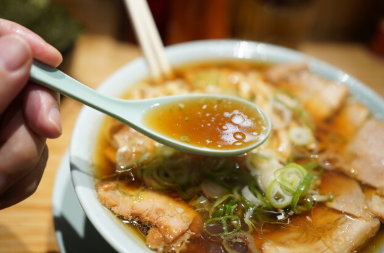 実際にひろちゃんラーメンを食べてみると、まずはスープの濃厚さと背脂の甘みに驚かされます。レンゲをひと口飲むと、醤油のキレと豚骨のコク、そして背脂のまろやかさが絶妙に重なり合い、強烈な旨味が広がります。続いて麺をすすれば、もちもちとした太麺がスープをしっかりと抱え込み、噛むほどに小麦の甘みが加わって満足感を高めてくれます。チャーシューは肉厚でジューシー、スープの塩気と絶妙にマッチし、一口ごとに幸せを感じさせます。途中で野菜を絡めるとシャキシャキ感が口の中をリフレッシュし、再びスープと麺の濃厚さに戻れるのも魅力です。最後まで飽きずに食べ進められ、気づけばスープを飲み干してしまうほど。池袋でがっつり系を求めるなら、間違いなく満足できる一杯です。