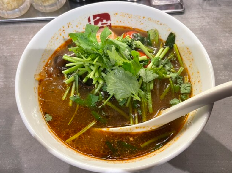 実際にたきちゃんラーメンを食べてみると、まずスープのインパクトに圧倒されます。背脂が輝く濃厚スープをひと口すすると、醤油のキレと豚骨の旨味、背脂の甘みが絶妙に重なり合い、強烈な満足感を与えてくれます。続いて太麺をすすれば、もちもちとした食感と濃厚スープの一体感に感動。チャーシューを頬張ればジューシーな肉汁が広がり、豪快な見た目以上に繊細な味わいを楽しめます。途中で野菜を混ぜるとシャキシャキ感が加わり、口の中をリセットしつつ再びスープと麺の濃厚さを堪能できるのも魅力です。気づけばレンゲが止まらず、最後まで夢中で食べ進めてしまう中毒性の高さ。虎ノ門でがっつりラーメンを求めるなら、必ず満足できる一杯だと断言できます。