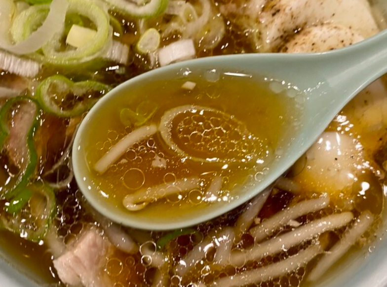 シンちゃんラーメンのスープは、豚骨をベースにした醤油仕立てで、丼を覆うように背脂が浮かんでいます。レンゲを口に運ぶと、まず醤油のシャープなキレが広がり、その後に豚骨の深いコクと背脂の甘みがじんわり押し寄せます。濃厚さとパンチのある旨味を備えつつ、動物系特有の臭みを抑えているため非常に飲みやすいのが特徴です。また、香味油や隠し味が奥行きを加え、ただ濃いだけでなく「もう一口」と飲み進めたくなる中毒性を持っています。背脂の量が多いのにクドさを感じにくいのは、塩気と甘みの絶妙なバランスによるもの。新宿のラーメン激戦区で存在感を放つスープは、一度味わうと忘れられない魅力を備えています。