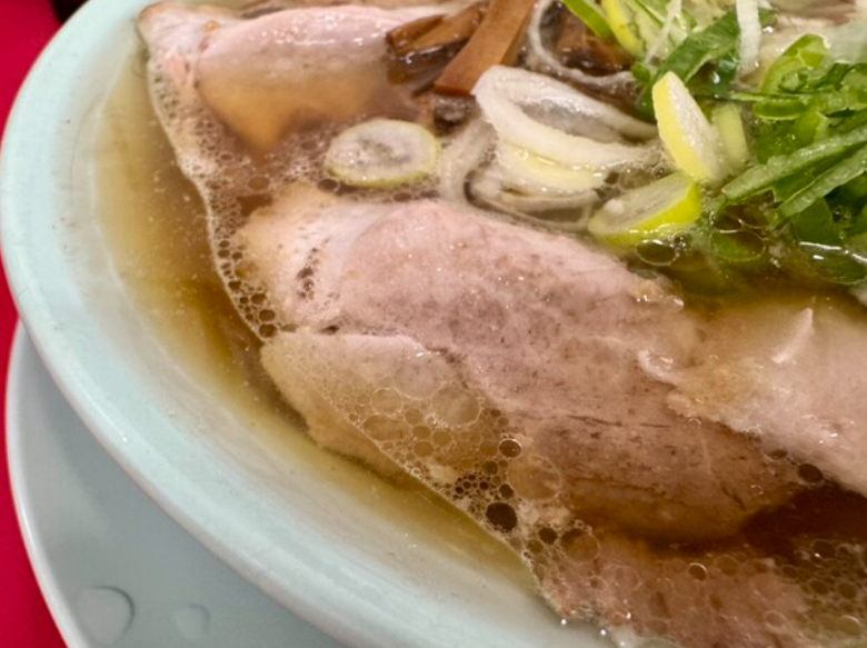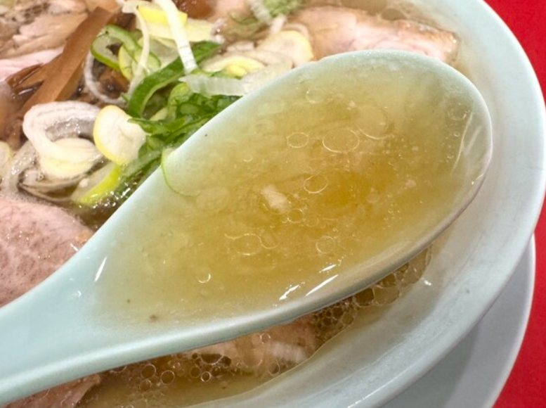 スープは豚ガラや鶏ガラをじっくりと炊き出した清湯醤油がベース。琥珀色の透き通った見た目からは想像できないほど深い旨味が広がります。表面に浮かぶラードがスープを熱々に保ちながら、まろやかな甘みと香ばしさを演出。一口目は醤油のキレが立ち、その後に動物系のコクがじんわりと広がる構成です。軽やかで飲みやすい仕上がりですが、満足感をしっかり与えてくれるため「飲み干せるスープ」として人気を博しています。卓上に用意されたにんにくや辛味調味料を加えることで、パンチの効いた味に変化させることも可能。シンプルながら奥深い味わいを持ち、日常的に繰り返し楽しめる中毒性を備えたスープです。