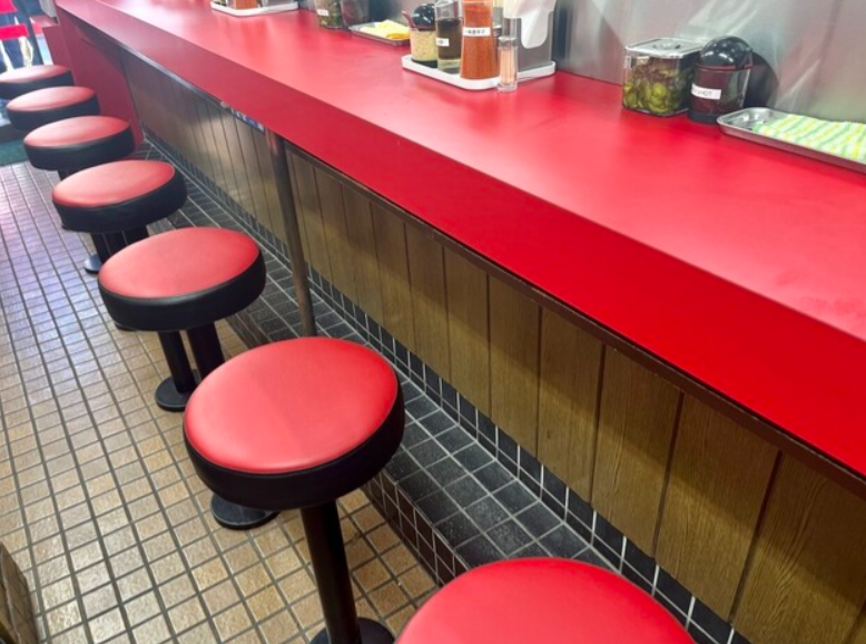 12時前後はサラリーマンや学生で混雑必至。回転率は早いが待ち時間は覚悟。