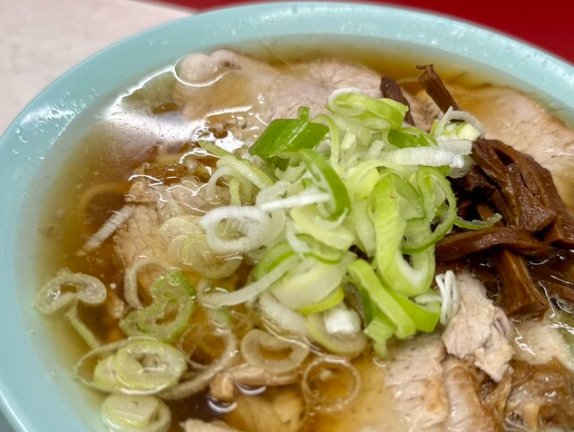 看板メニューは「中華そば」(750円)。透き通った清湯醤油スープと中太麺、チャーシュー・ネギ・メンマ・海苔という潔い具材構成で、ちゃん系ラーメンの王道を体現しています。肉を堪能したい人には「チャーシュー麺」、さっぱり食べたい人には「わかめ中華そば」がおすすめ。さらに味玉やネギ増し、追加チャーシューなどのトッピングで自分好みにアレンジ可能です。ライス無料サービスが付くのも大きな魅力で、スープをかけて雑炊風にしたり、チャーシューをのせて丼風にしたりと楽しみ方が広がります。シンプルながら満足度が高く、毎日通っても飽きないメニュー構成は、ちゃん系ラーメンの理念そのもの。新宿の立地と相まって、ランチや夜食、飲み会後の締めとして多くのリピーターを生んでいます。