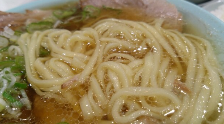 かっちゃんラーメンのスープは、豚ガラや鶏ガラを炊き出した清湯系の醤油スープがベースです。見た目は琥珀色の透き通ったスープですが、ひと口飲むとまず醤油の香ばしい風味が広がり、その後に動物系の旨味がじんわりと押し寄せます。表面に浮かぶラードはスープを熱々に保つと同時に、甘みとコクを与える重要な役割を果たしています。飲み干せるほど軽やかでありながら、飲みごたえもしっかり感じられるため、ランチや夜食、飲み会の締めなど幅広いシーンに対応。卓上のにんにくや辛味調味料を加えれば、パンチの効いた力強い味わいに変化し、自分好みにアレンジできるのも楽しみのひとつです。シンプルながら奥深さを持つスープは、多くの常連客を惹きつけています。
